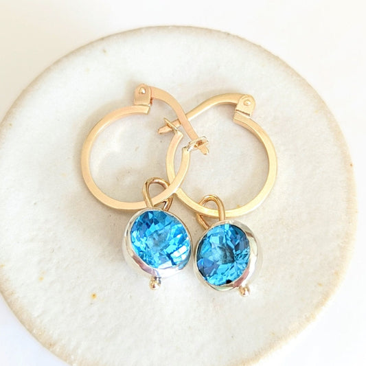Swiss Blue Topaz Gold Hoop Earrings – Removable Charms, Ocean Collection