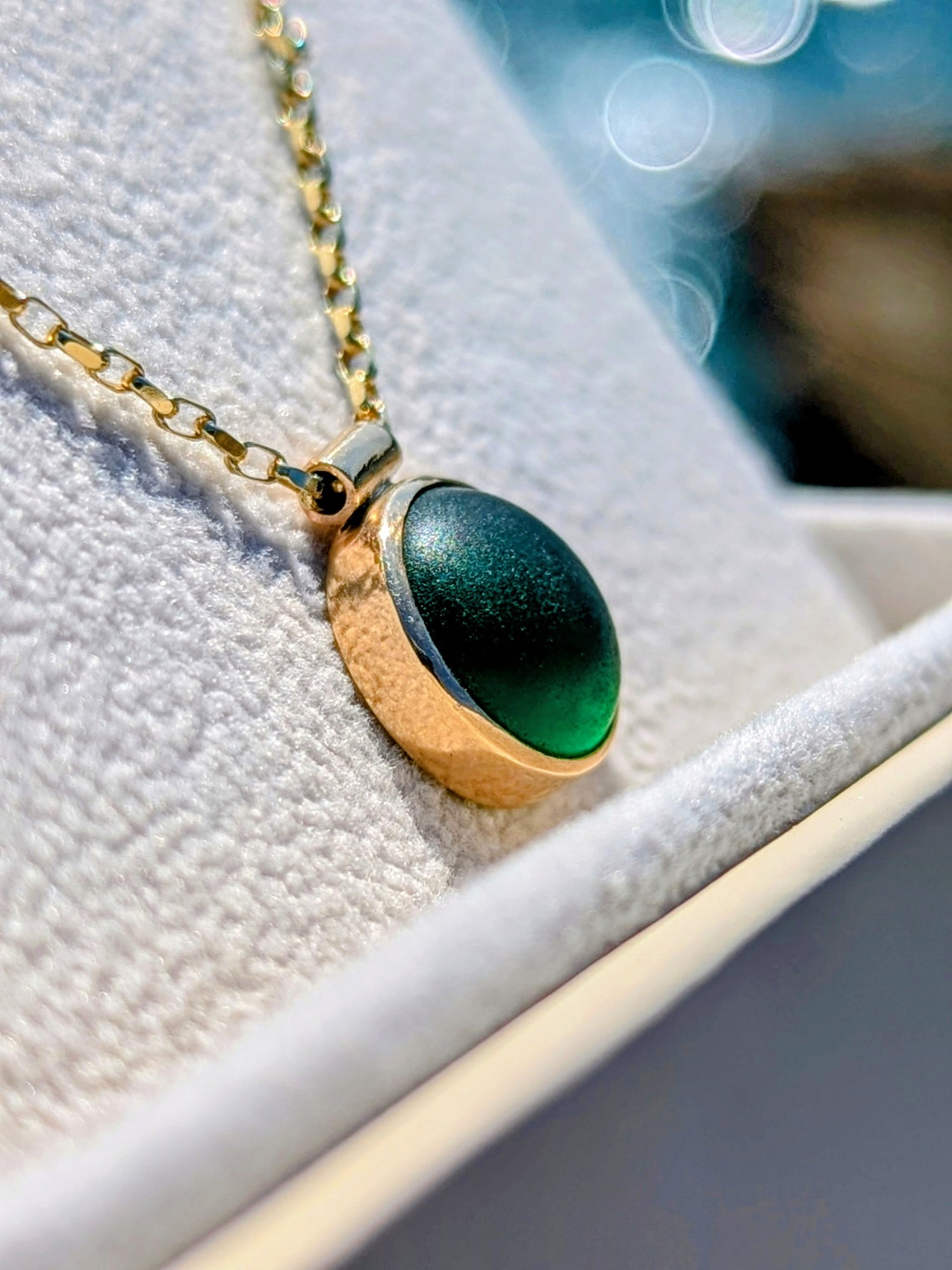 From gold sea glass necklaces that glow like sunlit waves to tactile spinning pendants that ground and soothe, each design invites you to carry a piece of the Cornish coasts wherever you go.