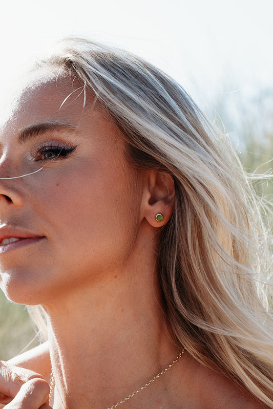Green Sea Glass Stud Earrings in Solid 9ct Gold