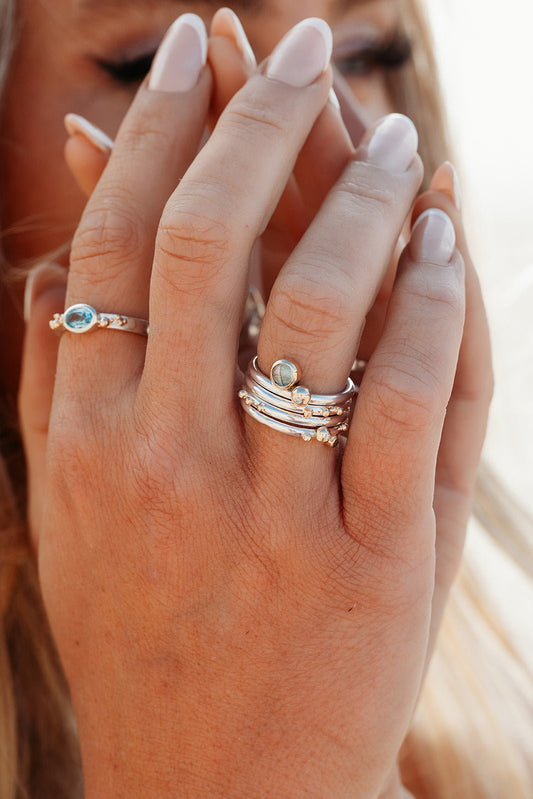 London Blue Topaz and Diamond Stacker Ring Set in Silver and 9ct Gold – Handmade in Cornwall