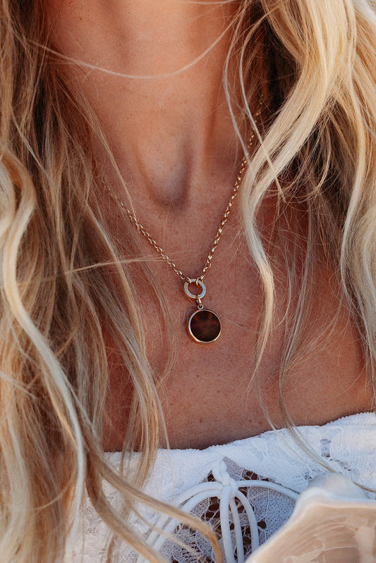 Solid 9ct Gold Brown Sea Glass Necklace with Hinged Connector - Handmade in Cornwall