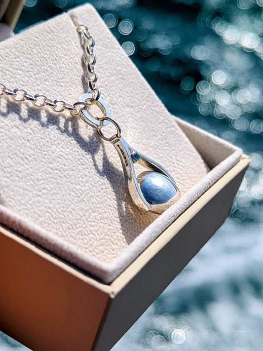 Spinning Minstrel Silver Necklace with London Blue Topaz – Ocean-Inspired Jewellery