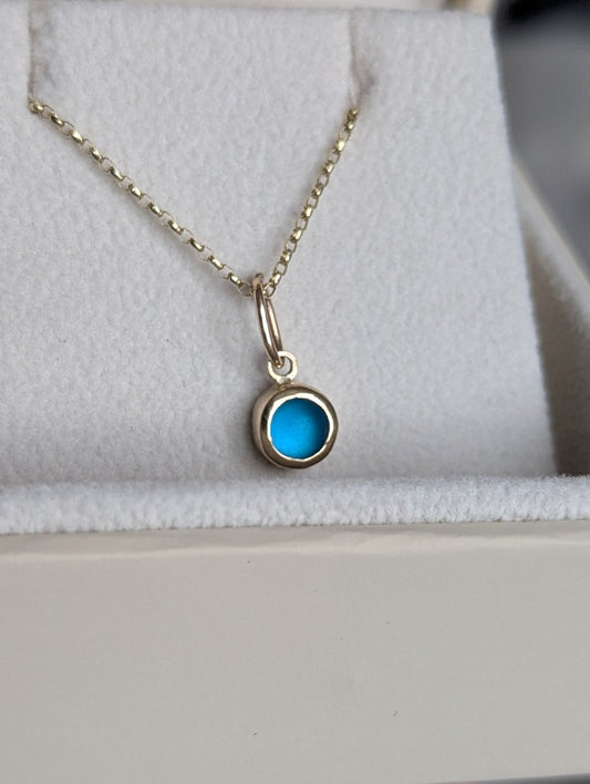 Vibrant Blue Sea Glass Pendant - Solid Gold Necklace