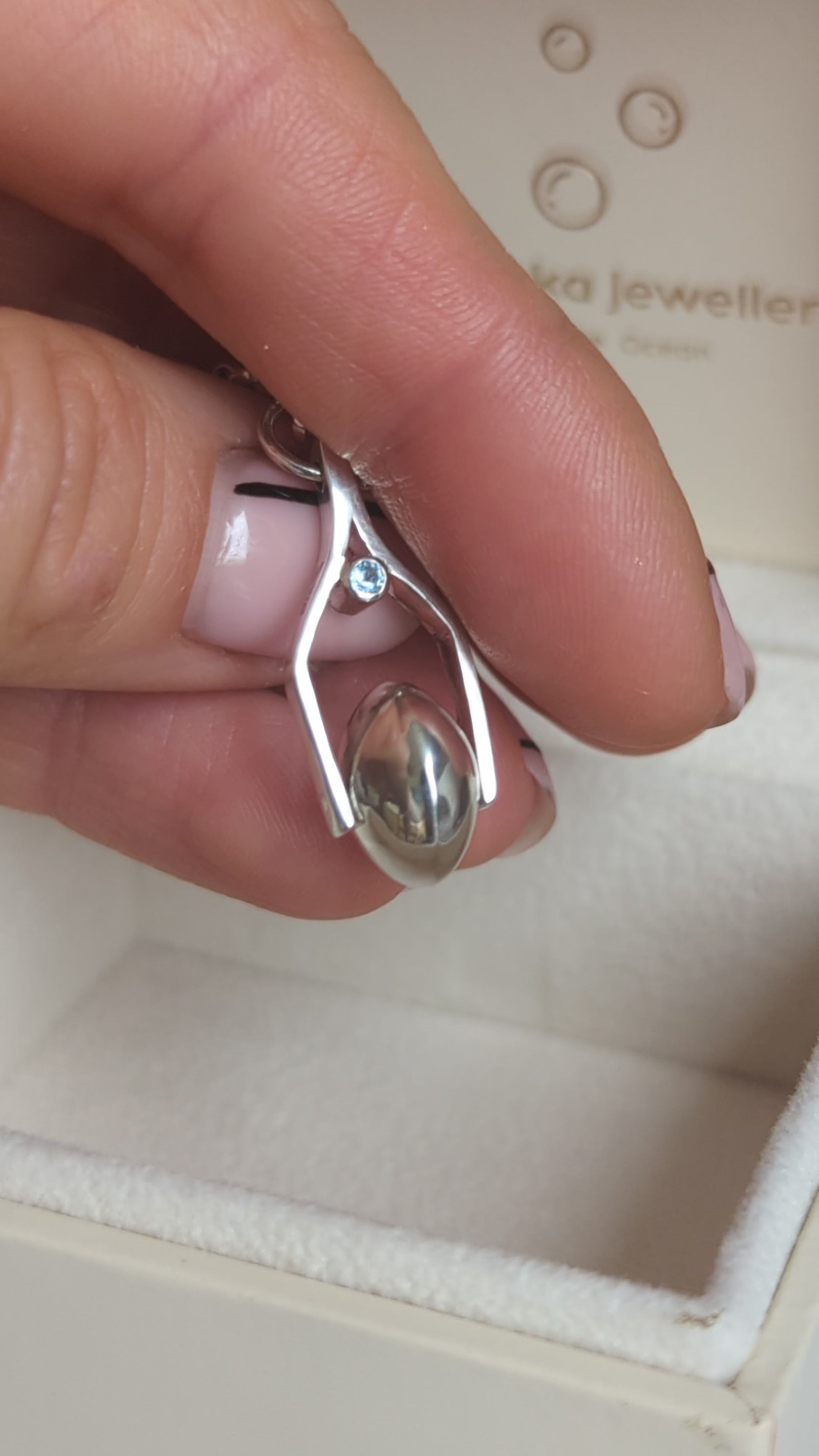 This is the original Booblinka spinning necklace design worn on ITV’s Playing Nice — available here as a ready-to-ship piece.