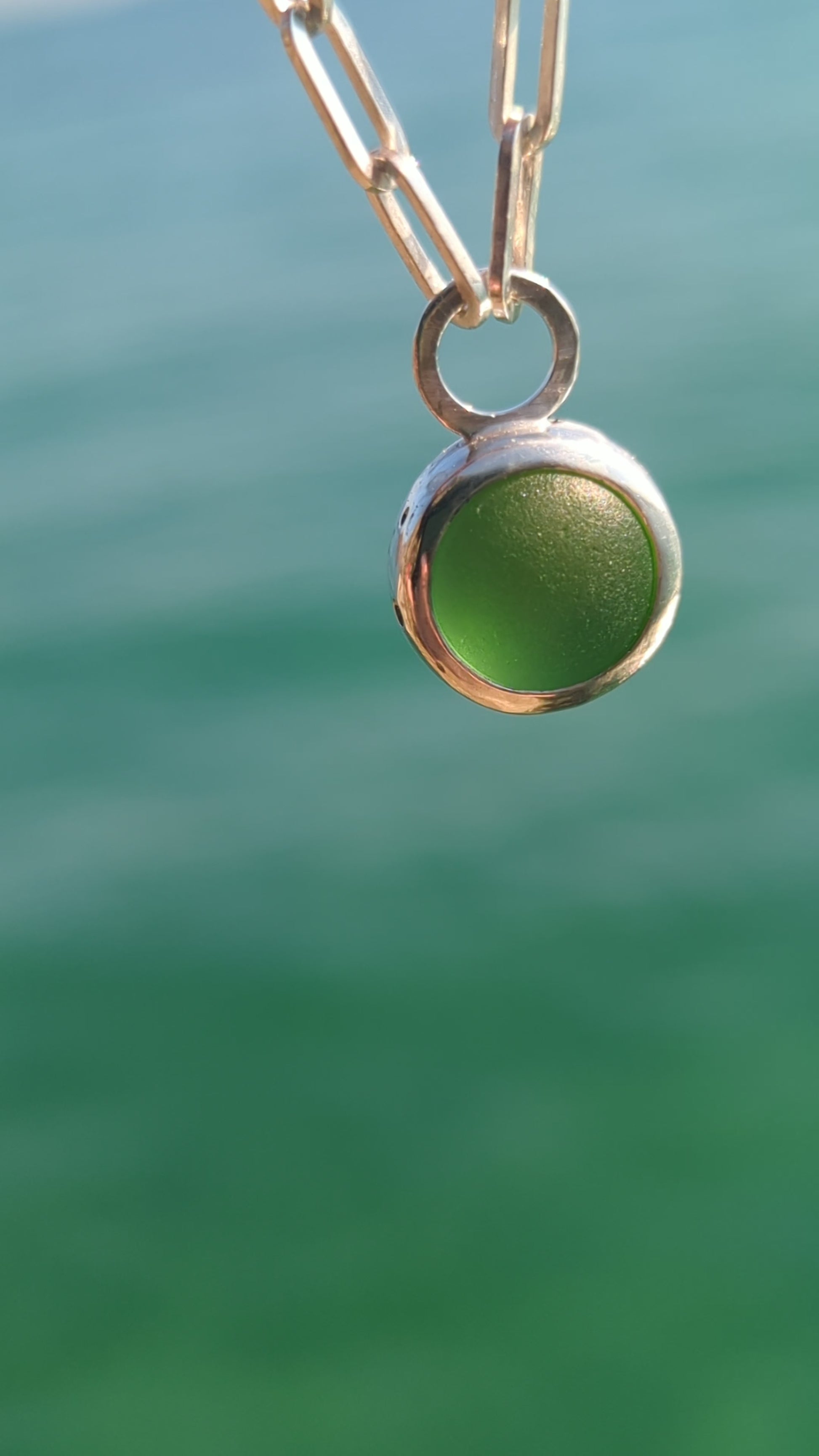 Green Sea Glass Necklace – Sterling Silver with Paperclip Chain